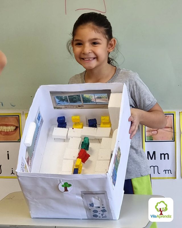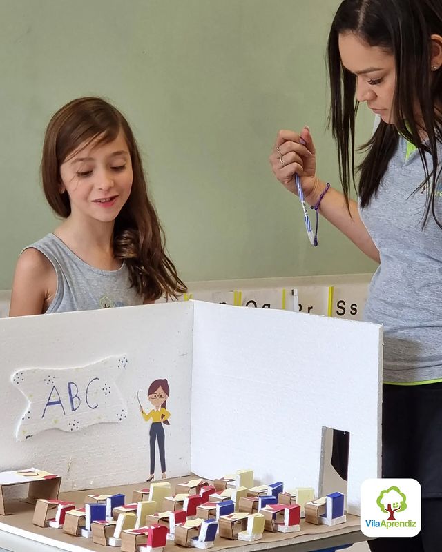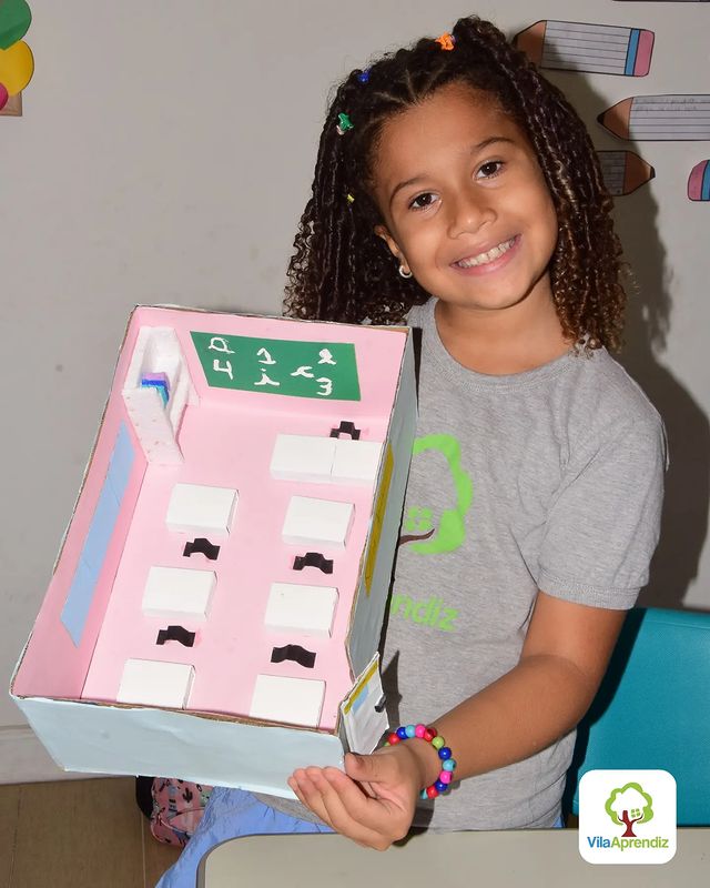 Os alunos dos 2°s anos capricharam e abusaram da criatividade confeccionando maquetes que representavam a sala de aula, utilizando caixas de papelão, tampinhas de garrafas, isopor, papéis coloridos, dentre outros materiais.🏫📜